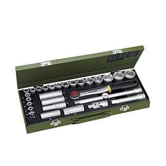 Proxxon 23000 Steckschlüsselsatz Nusskasten mit 12,5mm (1/2″) Ratsche 29teiliges Werkzeug-Set mit Stahlkasten