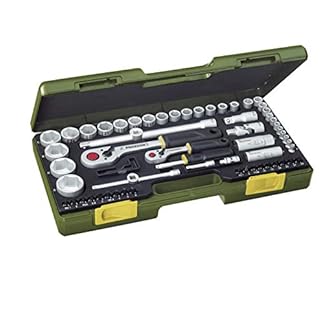 Proxxon 23286 Steckschlüsselsatz Komplettsatz mit 6,3mm (1/4″) und 12,5mm (1/2″) Umschaltratsche 65teiliges Werkzeug-Set mit Kunststoffkoffer