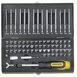 Proxxon 23107 Super Sicherheits- und Spezialbitsatz, Schraubendrehergriff (1/4″), 75-teiliges Bit-Set mit Stahlkasten
