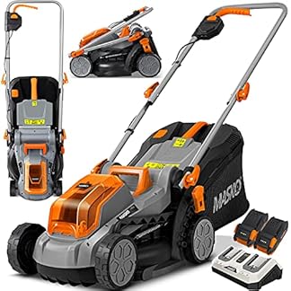 MASKO® Akku Rasenmäher mit Mulchfunktion inkl. 2X Akkus Li-Ion Batterie 4Ah & Doppel-Ladegerät – Rasentrimmer Schnittbreite 37cm, 6-fache 25-75mm Schnitthöhenverstellung Fangkorb 40L bis 450m² Flächen