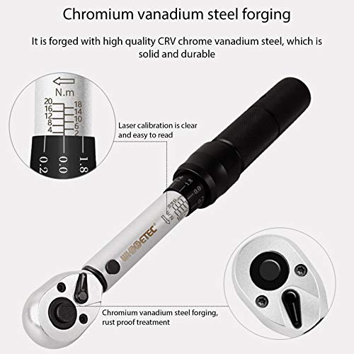 Hohe Gründlichkeit: Einstellbereich für das Drehmoment des Schlüssels: 2 ~ 20 Nm; Gesamtlänge: 225 mm, unser Drehmomentschlüssel liefert Messwerte mit einer Akkuratesse von ± 3%. Stellen Sie vor der Verwendung die am Schraubenschlüssel montierte Anzeige auf das erforderliche Drehmoment ein und ziehen Sie dann am Schraubenschlüssel
