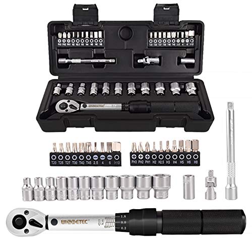 Drehmomentschlüsselsatz: Sechskantspitze: H2, H2.5, H3, H4, H5, H6, H8, H10. Erweiterte Sechskantspitze (L = 62 mm): H5. Torx: T10, T15, T20, T25, T30. Chargenkopf: PH1, PH2, PH3. 1 x 1/4 Gebühr Drehmomentschlüssel, 1 x 1/4 Gebühr Universalgelenk, 1 x 100 mm Verlängerungsstange, 1 x 1/4 bis 3/8 Kopf