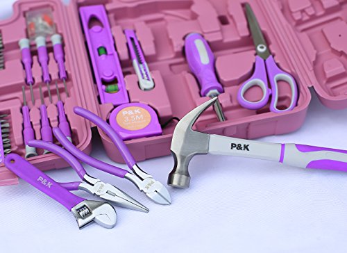 das Werkzeugset enthält: 1x Werkzeugkoffer, 1 x Set – Nägel Dübel des Weiteren Schrauben 1 x Wasserwaage, 1 x Feststellzange, 1 x Hammer, 1 x Schere, 1 x Cuttermesser, 1 x Engländer, 1 x Bithalter, 1 x Spitzzange, 1 x Seitenschneider, 1 x Bandmaß 3,5m, 6 x Inbusschlüssel, 6 x Feinmechaniker Schraubendreher; 4 x Schlitz – Bits; 6 x Vierkant Bits; 4 x Torx – Bits