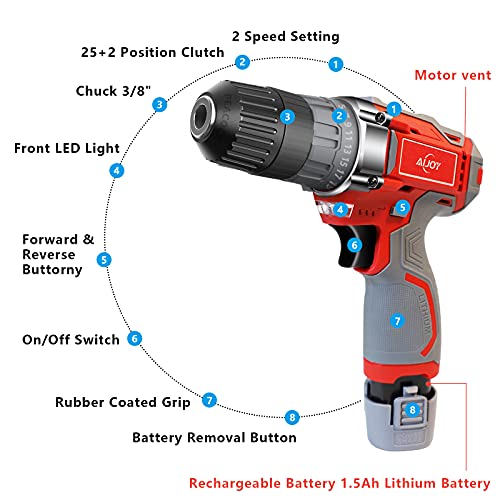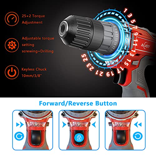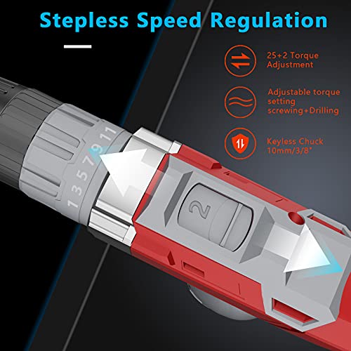 [25 + 2 Drehmomenteinstellung] aufladbare Batterie Bohrschrauber 12V mit 25+2 Drehmomenteinstellung, die eine diffizil Steuerung zum Bohren von Holz, Metall, Kunststoff und anderen Materialien ermöglicht. Das maximale Drehmoment erreicht 35Nm, ideal stattdessen verschiedene Anwendungen, furzegal ob es sich um Heimwerker-, Hausbau- oder Heimwerkerprojekte handelt.