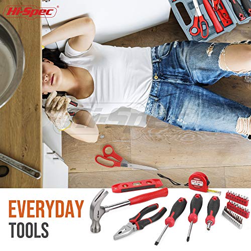 FÜR ZUHAUSE & HAUSHALT: Vom Zusammenbau von Flat pack und Möbeln, dem Klopfen von Nägeln, dem Ausmessen von Räumen, dem Ziehen und Abschneiden von dünnem Draht, dem Aufstellen von Einrichtungsgegenständen bis hin zum Aufhängen von Wandbildern. Das Hi Spec 39 Piece Home DIY Tool Kit ist ein kompaktes Set mit den Werkzeugen, die für grundlegende Heimwerker-Reparatur- und Reparaturarbeiten benötigt werden – das Starterkit für zu Hause in einer praktischen Tragetasche