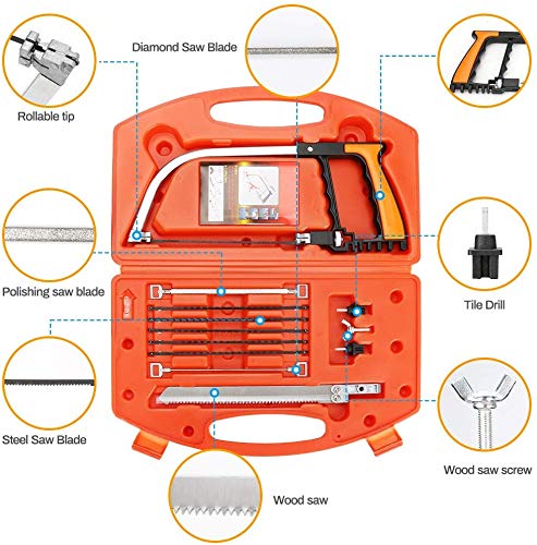 【Multifunktional, Anpassbar Einsetzbar】 Diese 14-in-1 Handsäge passt zu Ihrem Bedarf,Ersatzklingen abschließen alle Ihre Säge BedürfnisseUnd Mit 7 Mehrzweck Bügelsäge Sägeblättern, 2 Diamant-Sägeblattern, 2 Bohrer, 1 Holz-Klingenschraube, einer Bogensäge, einer Bedienungsanleitung. Für den Hausgebrauch oder auch als Geschenk für Hobbybastler ist dieses Set wirklich perfekt.